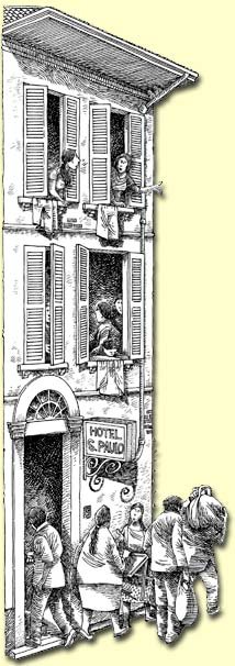 algunos huéspedes rumbo a sus cuartos. Son los comerciantes