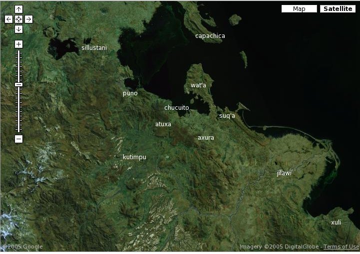 Atux Qullu Achachila: centinela de ChucuitoViendo la configuración del antiguo mapa Lupaqa, una interrogación que surge es porque Chucuito no estaba en el centro de este territorio?. Por ejemplo Juli ó Ilave están en el centro del antiguo territorio Lupaqa ya podrían haber sido, desde este punto de vista geopolítico, satisfactorias capitales del reyno Lupaqa. La respuesta parece estar en la cumbre del Atuxa. Con sus 4900 metros sobre el nivel del mar fué el cerro protector del reyno Lupaqa, achachila atuxa. Actualmente también es conocido como San Francisco de Atoja y continúa a tener muchos peregrinos en el sincretismo religioso del actual pueblo aymara. Hay várias formas de accesar a su cumbre, siendo una de las más conocidas saliendo por el antiguo portal lupaqa hacia el Pacífico, hoy conocido como calle Santa Bárbara en Chucuito. Durante el periódo de 2 ó 3 horas que demora el ascenso hasta coronar la cima se puede ir comprendiendo la importancia centinela de atuxa para Chucuito. Desde la cumbre, y en un día despejado, se puede contemplar Copacabana, Juli, Ilave, Acora hacia el sur; mientras que hacia el norte podemos divisar Puno, Caracoto, Atuncolla y Juliaca. Todo el lago mayor y toda la cordillera Real Boliviana hacia el Este, mientras que hacia el Oeste veremos, junto con Kutimpu, los mas altos picos de la cordillera occidental. Por este panorma elíptico de 70, 80 ó hasta 100 kilómetros a la redonda, la cumbre del Atuxa, debe haber servido como un estratégico punto de aglutinador de informaciones, mediante un sistema elemental de comunicaciones visuales. Un ataque de fuerzas externas hacia Chucuito podía ser conocido en la urbe con uno o mas dias de antecedencia.